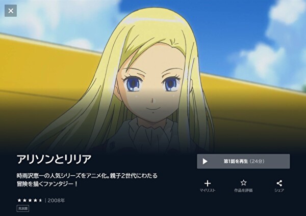 U-NEXTでアニメ「アリソンとリリア」の動画を無料トライアルで全話視聴