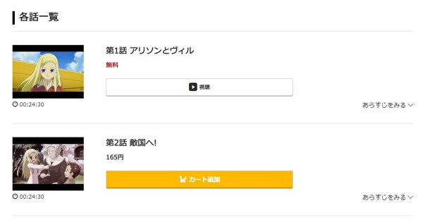 ただ、「アリソンとリリア」のアニメはレンタル配信なので、料金がかかるので無料で視聴できません。