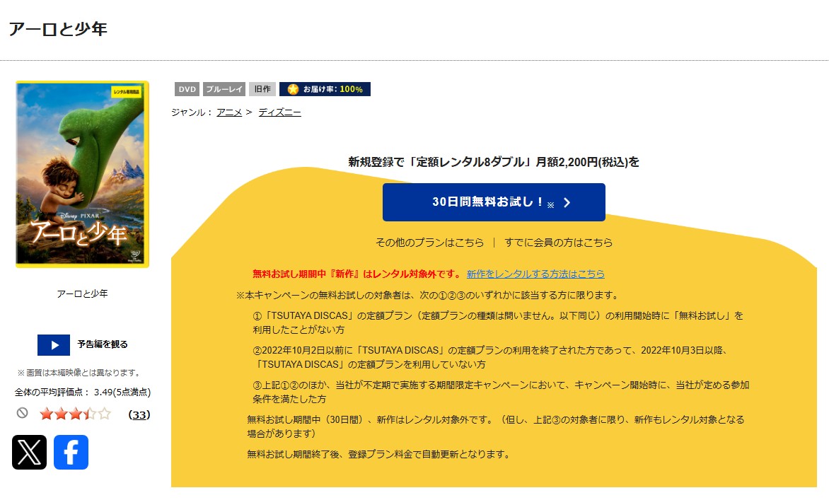 TSUTAYA DISCASで「アーロと少年」のDVDをフル視聴