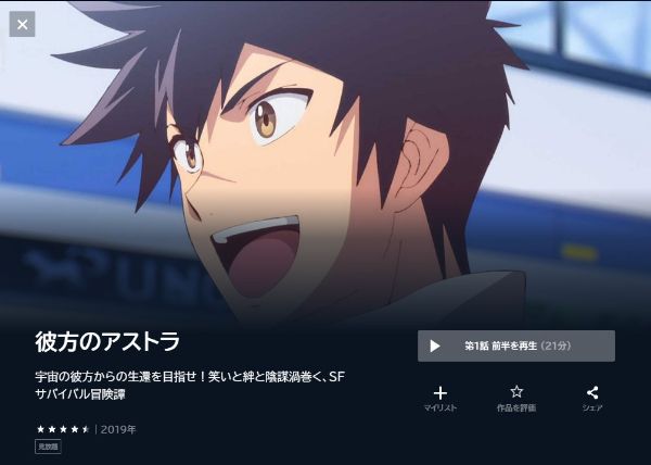 U-NEXTでアニメ「彼方のアストラ」の動画を無料トライアルで全話視聴
