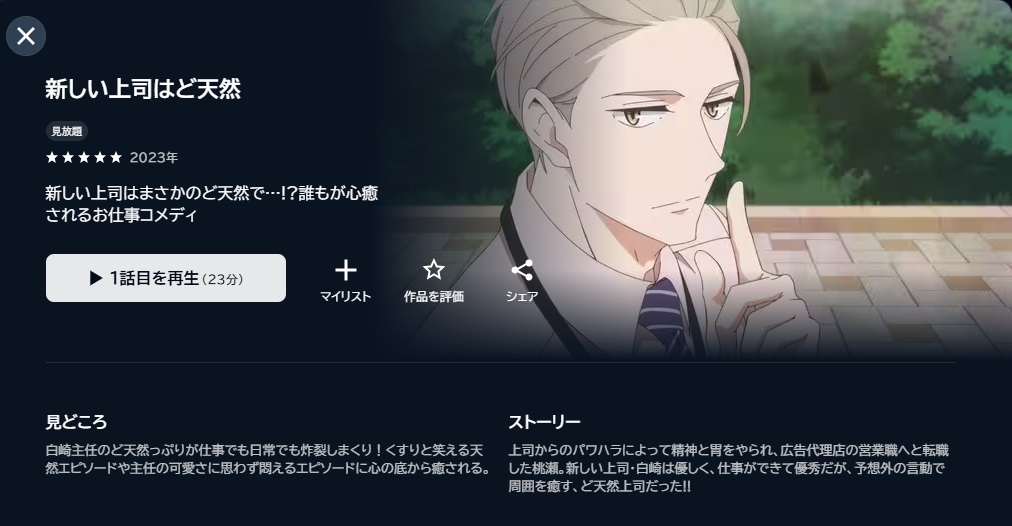 アニメ「新しい上司はど天然」のように、オフィスコメディのアニメ作品も見放題に含まれています。