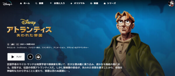 - 「アトランティス 失われた帝国」の他のディズニー作品も視聴可能。