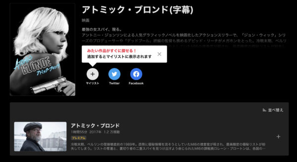 ただ、映画「アトミック・ブロンド」の関連作品の映画は配信しているので、見放題で視聴は可能です。