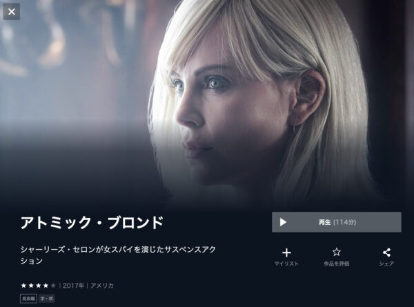 - 映画「アトミック・ブロンド」の関連動画も無料。