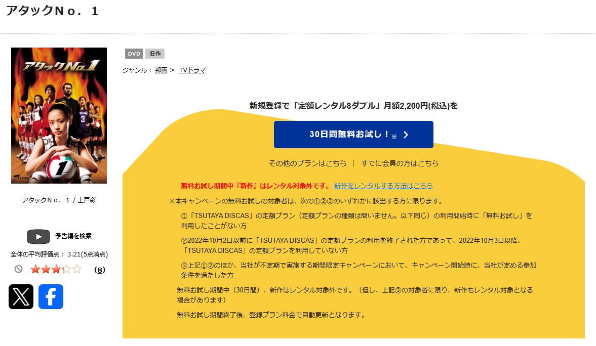 TSUTAYA DISCASで「アタックNo.1」のDVDを全話視聴