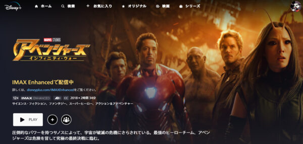 ただ、映画「アベンジャーズ/インフィニティ・ウォー」の動画は視聴できないので、アベンジャーズ/インフィニティ・ウォーを見たい場合はディズニープラスをお試しください。