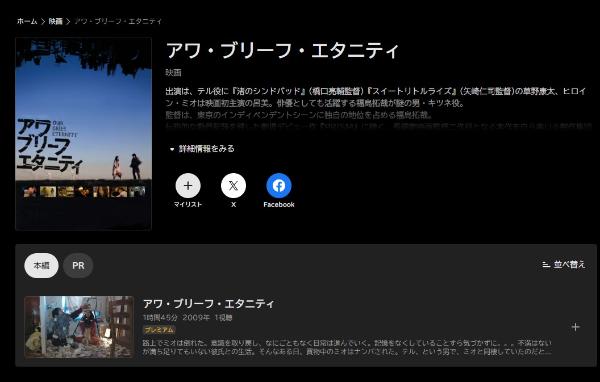 また、映画「アワ・ブリーフ・エタニティ」の関連作品もフルで視聴できます。