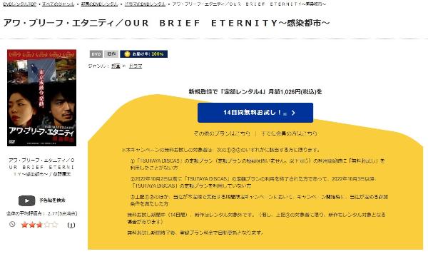 そして、映画「アワ・ブリーフ・エタニティ」はツタヤディスカスで配信しているので、無料でDVDレンタルが可能です。