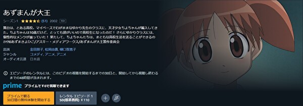 Amazonプライムでも、アニメ「あずまんが大王」は見放題で配信されており、30日間の無料期間があるので、余裕を持って「あずまんが大王」のアニメを全話視聴ができます。