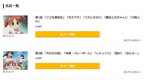 「あずまんが大王」のアニメのレンタル料金は1話110円~です。