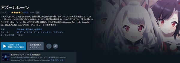 Amazonプライムでは、「アズールレーン」の関連作品や出演声優の他シリーズが見放題で配信されているものもあります。