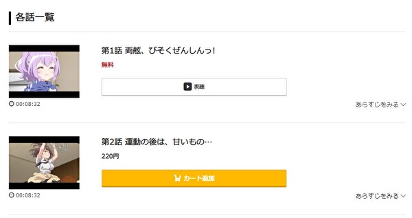 「アズールレーン びそくぜんしんっ!」のアニメのレンタル料金は1話220円~です。