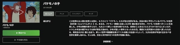 また、「バケモノの子」の映画の関連作品も見放題でフル視聴できます。