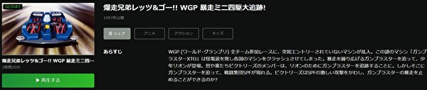 ただ、映画「映画 爆走兄弟レッツ&ゴー!!WGP 暴走ミニ四駆大追跡!」の関連作品の映画も配信しているので、有料にはなりますが見放題で視聴は可能です。