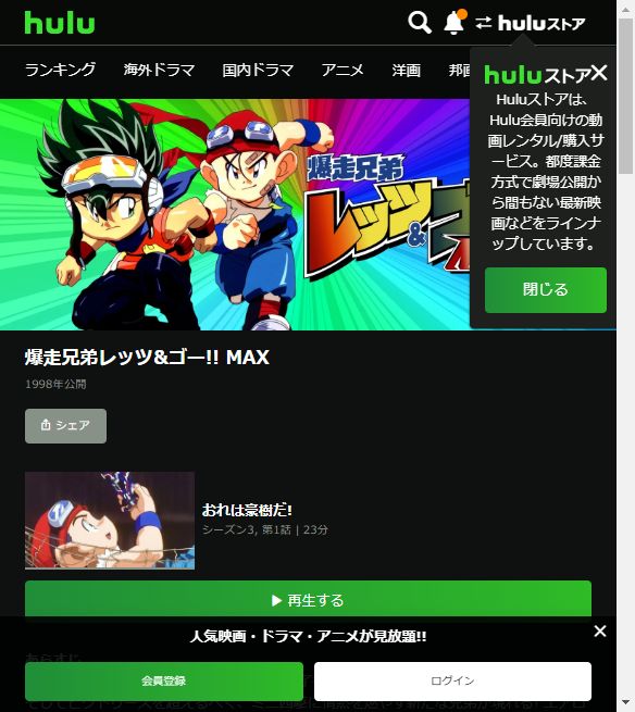 そして、アニメ「爆走兄弟レッツ&ゴー!!WGP(第2期)」の関連作品もHuluで配信中で見放題で視聴できます。
