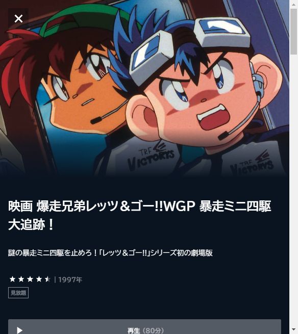• 映画 爆走兄弟レッツ&ゴー!!WGP 暴走ミニ四駆大追跡! 見放題