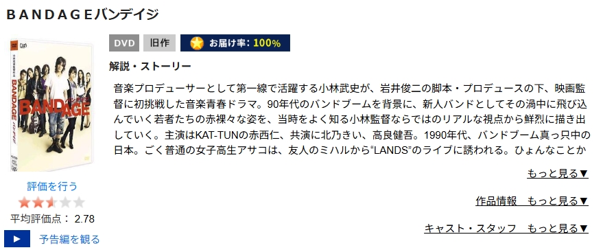 TSUTAYA DISCASで映画「BANDAGE バンデイジ」をDVDレンタルしてフル視聴