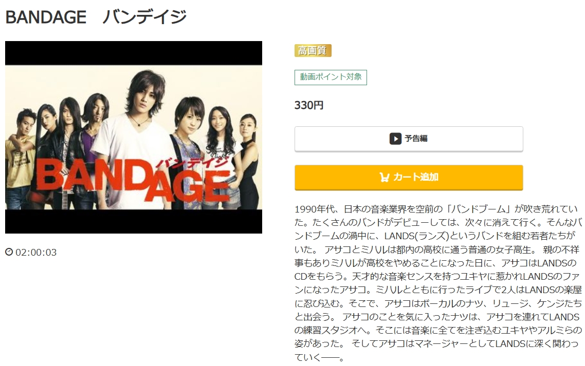 - 映画「BANDAGE バンデイジ」の配信がフル視聴可能。