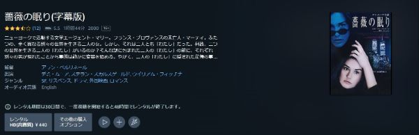 映画「薔薇の眠り」は330円でレンタル配信してるので、フルで視聴できます。