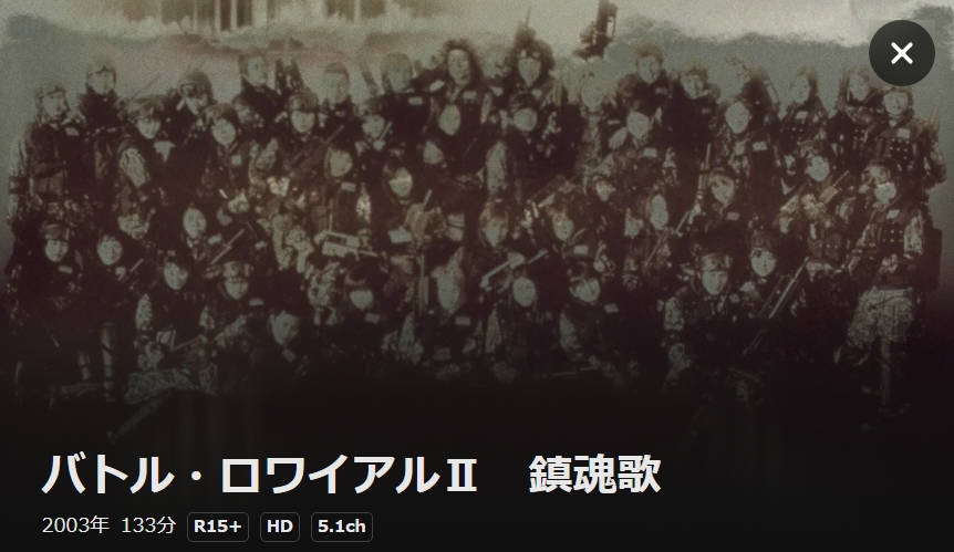 映画「バトル・ロワイアルⅡ 鎮魂歌」が配信してる動画配信サービスを調査しました。