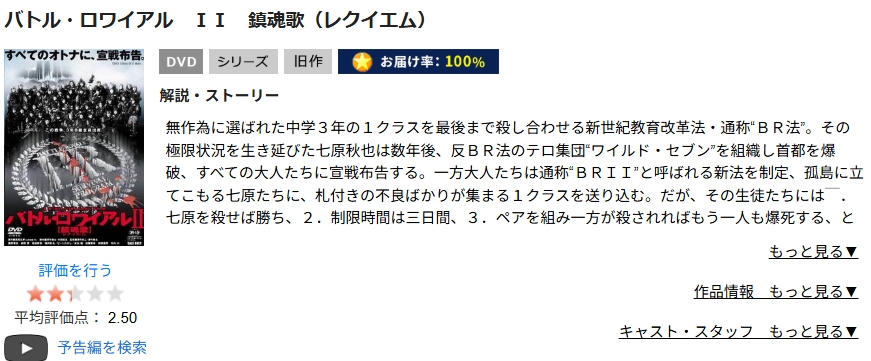 TSUTAYA DISCASで映画「バトル・ロワイアルⅡ 鎮魂歌」をDVDレンタルしてフル視聴