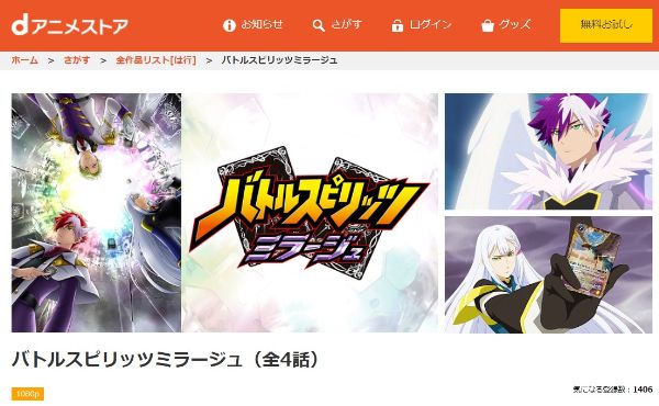 またdアニメストアは、アニメ「バトルスピリッツミラージュ」のシリーズや関連動画を全話視聴できます。