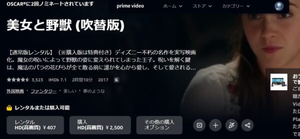 映画「美女と野獣」はAmazonプライムビデオでもフルで視聴することができます。