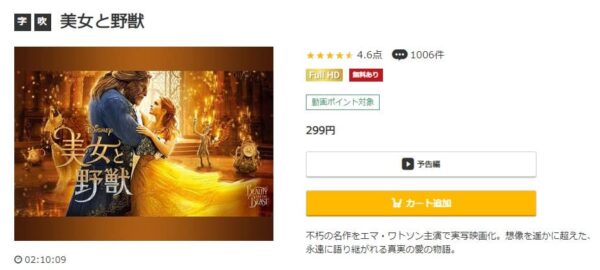 初回お試し期間が14日間あり、映画「美女と野獣」の動画も330円でフル視聴することができます。