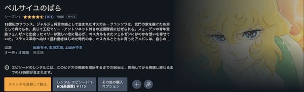 アニメ「ベルサイユのばら」はAmazonプライムで全話視聴できます。