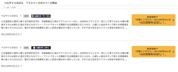 動画配信サービスとは少し違い、DVDレンタルサービスになりお試し期間で、「ベルサイユのばら」の動画を全話視聴することができます。