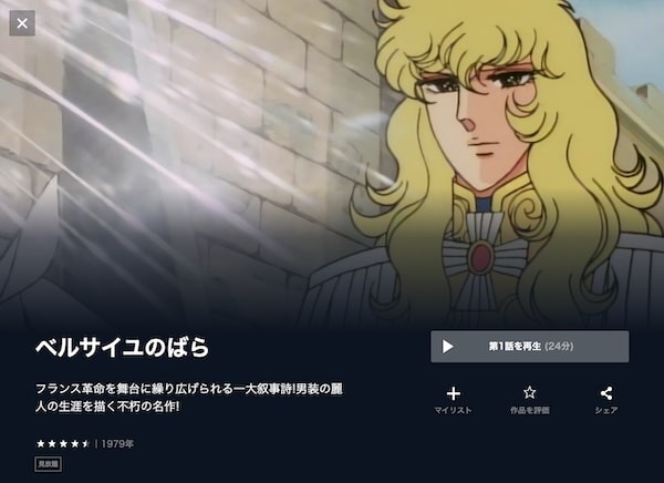 Netflixでは、アニメ「ベルサイユのばら」は配信されていませんでした。