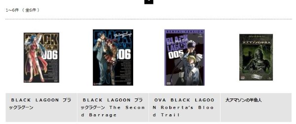 ツタヤディスカスで「BLACK LAGOON」のアニメをDVDでレンタルできるシリーズ作品はこちら。