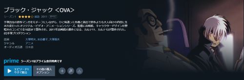 Amazonプライムでアニメ「ブラック・ジャック<OVA> 」の動画を全話無料視聴