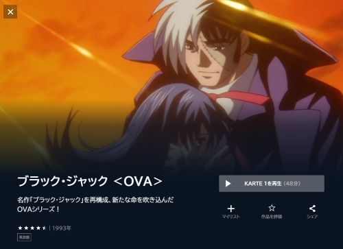 - 「ブラック・ジャック<OVA> 」が全話見放題で視聴可能
