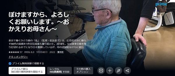 映画「ぼけますから、よろしくお願いします。~おかえりお母さん~」はAmazonプライムビデオでもフルで視聴することができます。