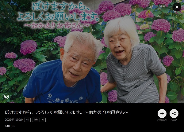 映画「ぼけますから、よろしくお願いします。~おかえりお母さん~」は550円でレンタル配信してるので、フルで視聴できます。