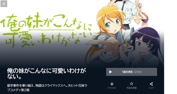 今後、Netflixでアニメ「俺の妹がこんなに可愛いわけがない。(2期)」の配信を待つより、U-NEXTでアニメ「俺の妹がこんなに可愛いわけがない。(2期)」は全話配信されているので、お試し期間のあるU-NEXTを利用することをおすすめします。
