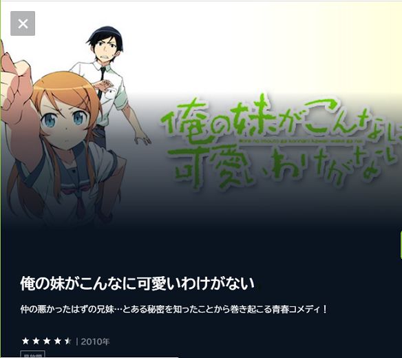 U-NEXTでアニメ「俺の妹がこんなに可愛いわけがない(1期)」の動画を無料トライアルで全話視聴