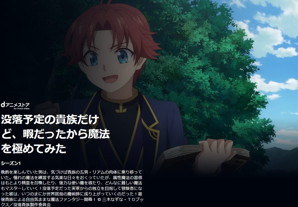 人気の動画配信サイトAmazonプライムでも、アニメ「没落予定の貴族だけど、暇だったから魔法を極めてみた」を視聴できるか調査しました。