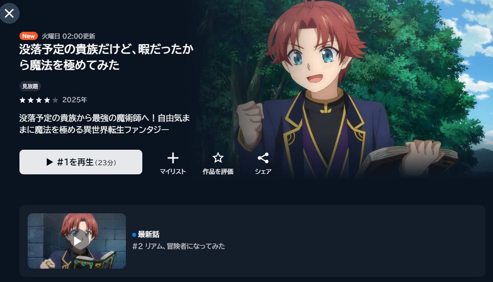- 「没落予定の貴族だけど、暇だったから魔法を極めてみた」が全話見放題で視聴可能