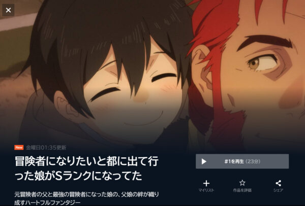 アニメ「冒険者になりたいと都に出て行った娘がSランクになってた」を動画配信サイトで全話視聴
