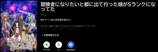 U-NEXTでのアニメ「冒険者になりたいと都に出て行った娘がSランクになってた」の動画の配信