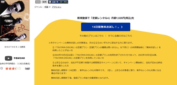 TSUTAYA DISCASで映画「BROTHER」をDVDレンタルで無料視聴