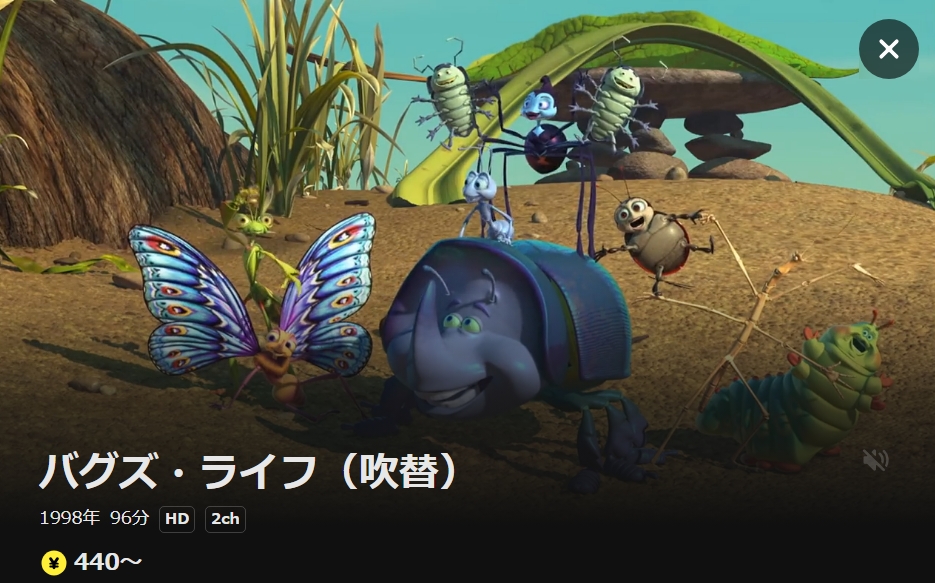 • 映画「バグズ・ライフ」の配信がフル視聴可能。