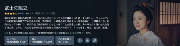 Amazonプライムビデオで映画「武士の献立」をフルで無料視聴