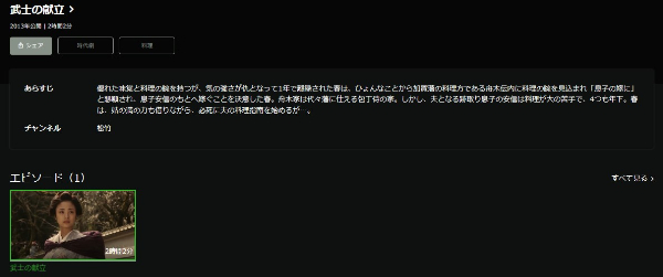 ただ、映画「武士の献立」の関連作品の映画は配信しているので、見放題で視聴は可能です。