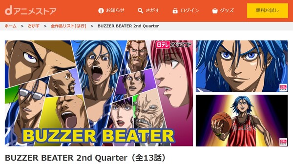 dアニメストアでアニメ「BUZZER BEATER 2nd Quarter」の動画を全話無料視聴