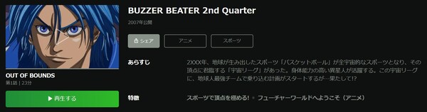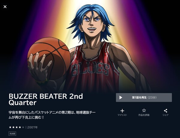 U-NEXTでアニメ「BUZZER BEATER 2nd Quarter」の動画を無料トライアルで全話視聴