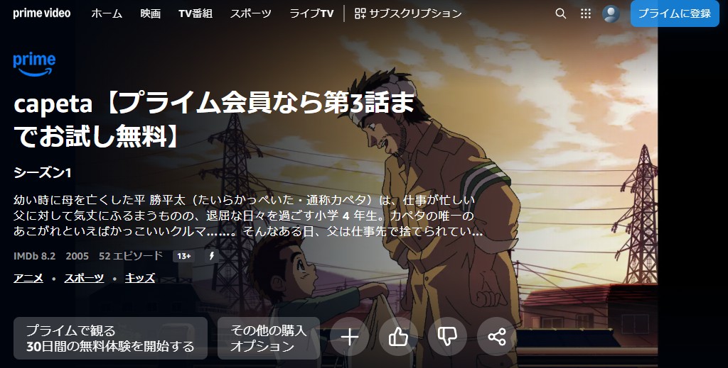 2026年2月現在、Amazonプライムではアニメ「capeta」の配信動画が下記の方法で視聴可能です。
