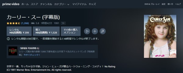 映画「カーリー・スー」はAmazonプライムビデオでもフルで視聴することができます。